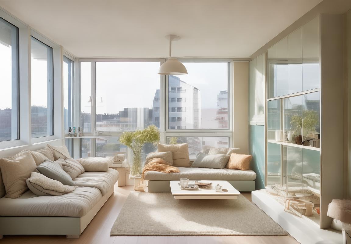 色彩搭配,营造宽敞感小户型中,色彩的选择对空间感有重要影响。浅色系墙面和家具可以反射光线,扩大视觉空间。同时,避免使用过多的大型装饰品,以免造成视觉上的拥挤。