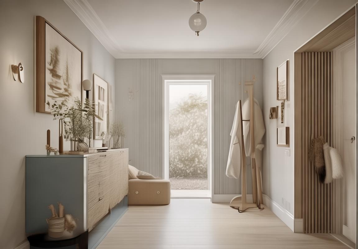 色彩与材质的运用:色彩和材质的选择对于玄关设计至关重要。柔和的色彩可以营造温馨的氛围,而明亮的色调则带来清新的感觉。在材质上,可以选择耐磨、易于清洁的材料,如瓷砖、石材或木质元素,这些不仅耐用,还能增添空间的质感。